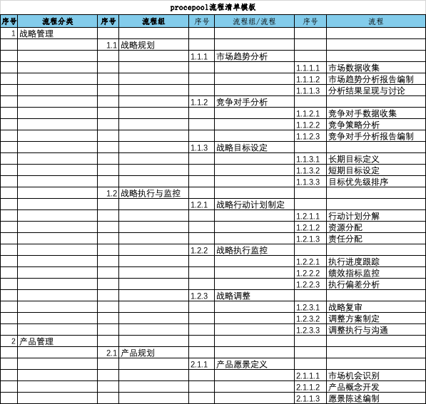 在procepool导入流程架构,需要按照既定的模板将流程录入,因此首先需要从系统中下载流程架构模板。下载方式如下: