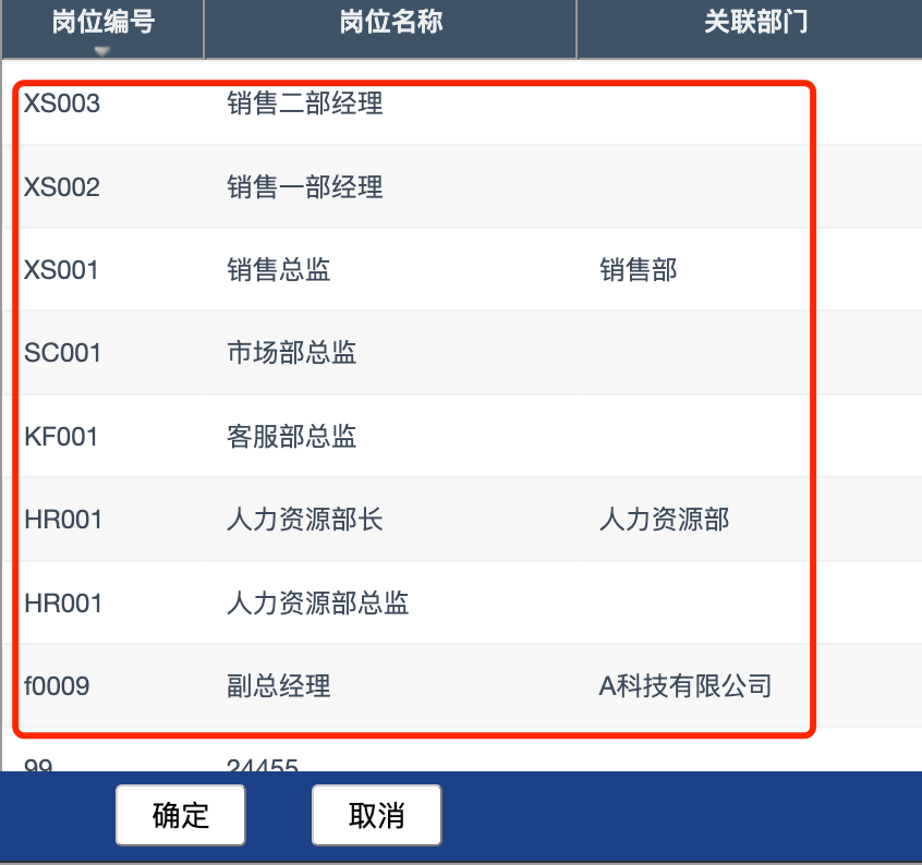 第三步:点击关联岗位栏内的“+”按钮,在弹出的窗口添加该岗位组关联的岗位。
