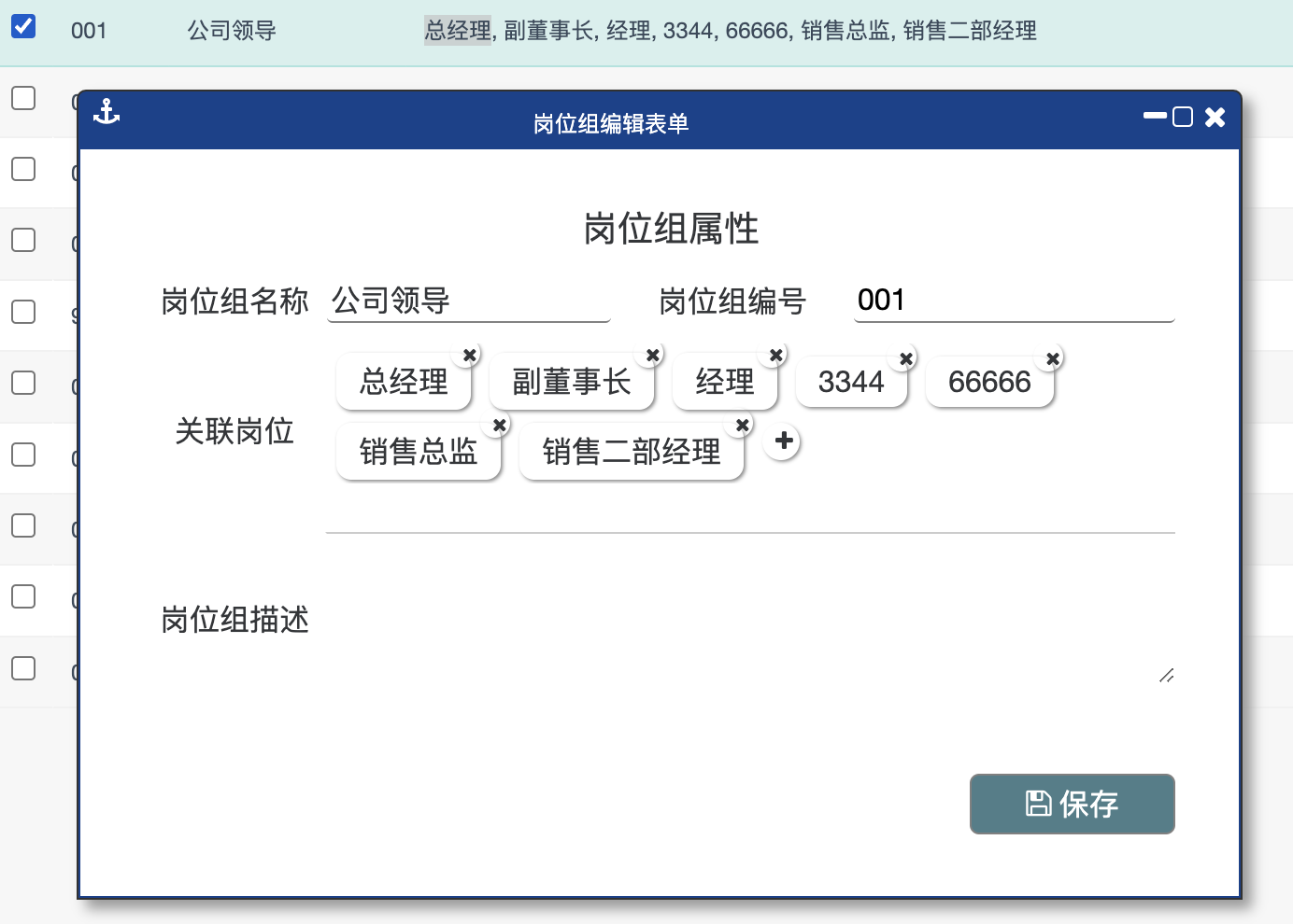 在岗位组清单界面,双击需要修改的岗位组,在弹出的窗口中修改该岗位组信息。